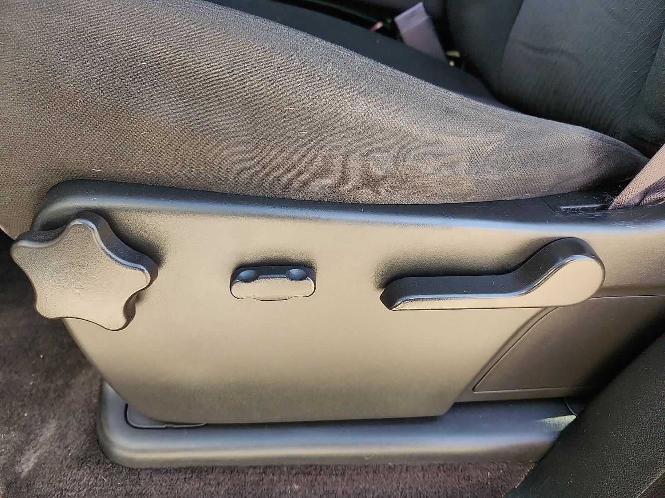 Manual passenger seat controls: Passenger seat manual reclining and fore/aft control