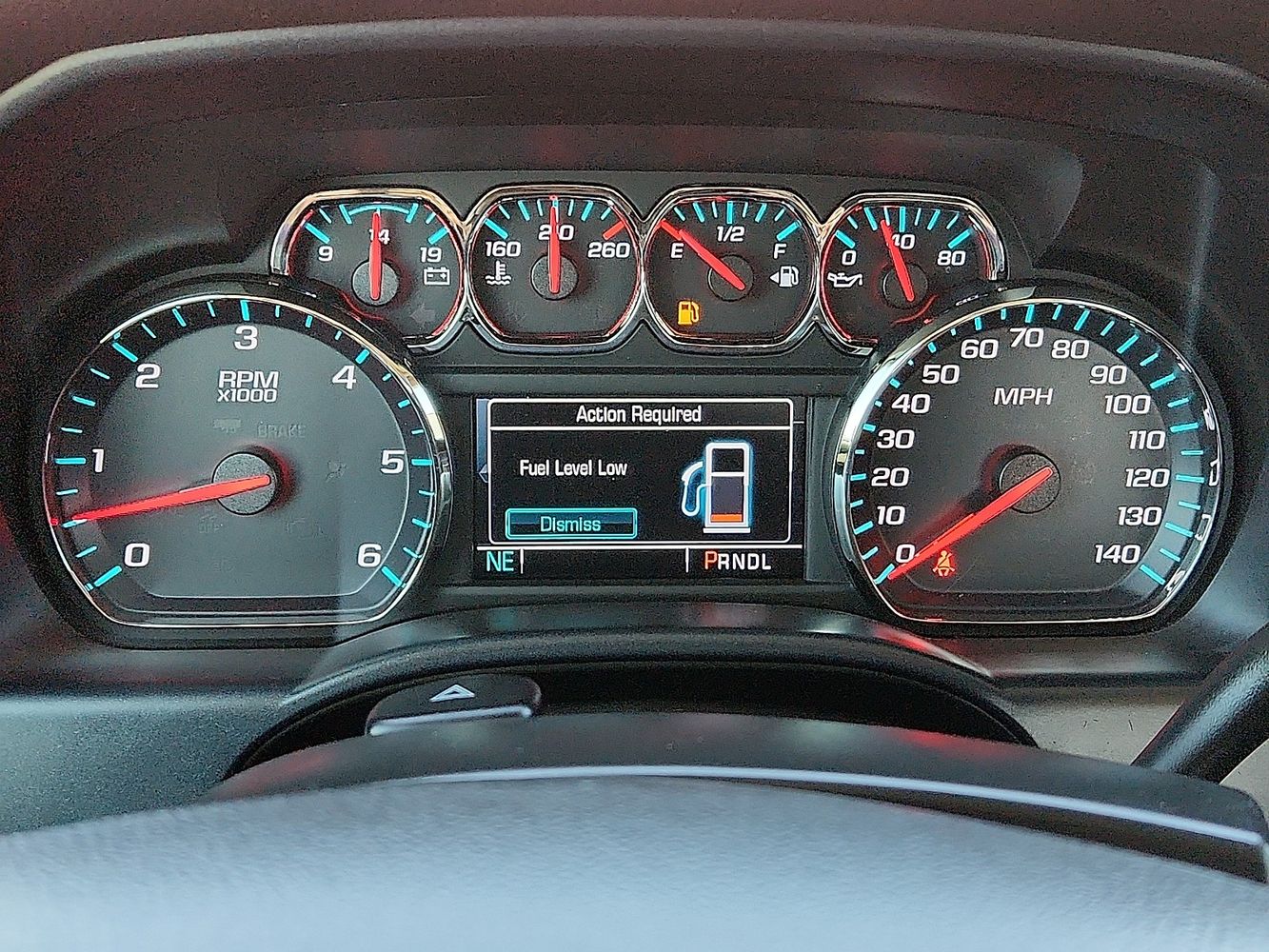 Low level warnings: Low level warning for oil, coolant, fuel, washer fluid and brake fluid