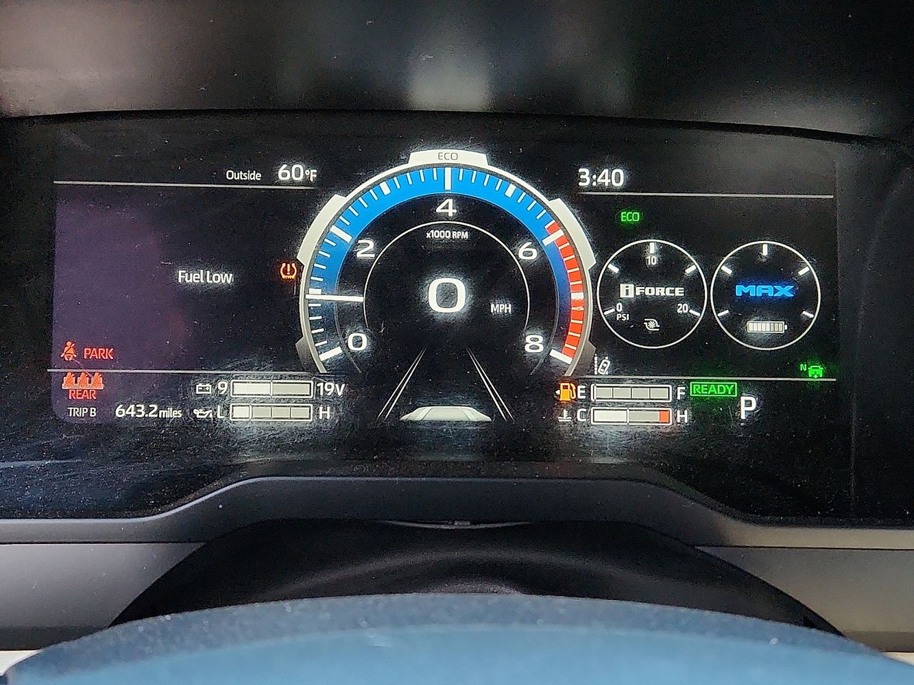 Low level warnings: Low level warning for oil, fuel, washer fluid and brake fluid