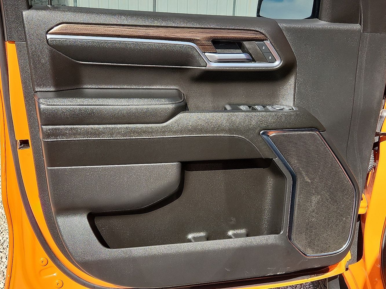 Door panel insert: Simulated wood and metal-look door panel insert